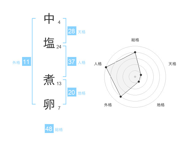 中塩 煮卵さんの総格は48画の4点!