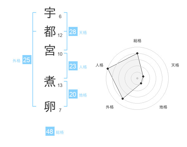 宇都宮 煮卵さんを姓名の画数から五運を鑑定