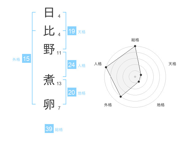 日比野 煮卵さんを姓名の画数から五運を鑑定
