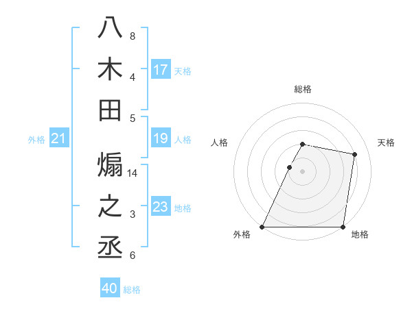 八木田 煽之丞さんの外格は21画の5点!