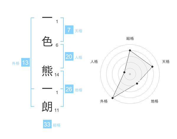 一色 熊一朗さんを姓名の画数から五運を鑑定
