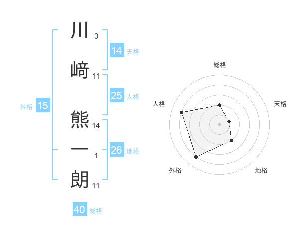 川﨑 熊一朗さんを姓名の画数から五運を鑑定