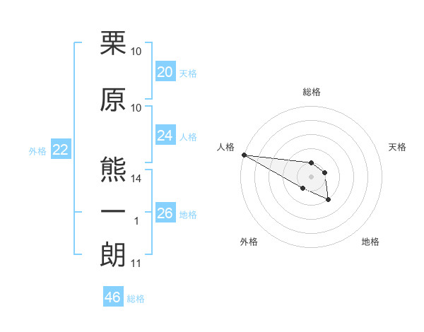 栗原 熊一朗さんの総格は46画の1点!
