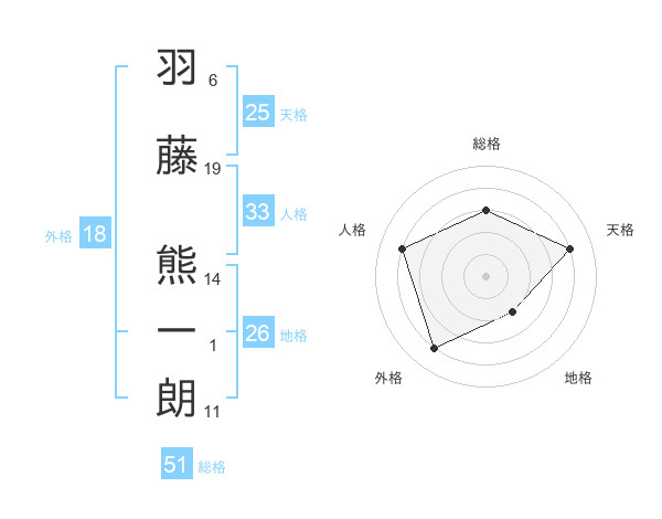 羽藤 熊一朗さんの総格は51画の3点