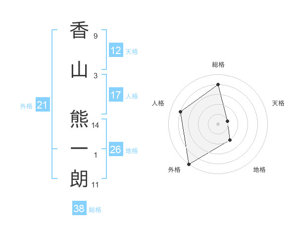 香山 熊一朗さんを姓名の画数から五運を鑑定