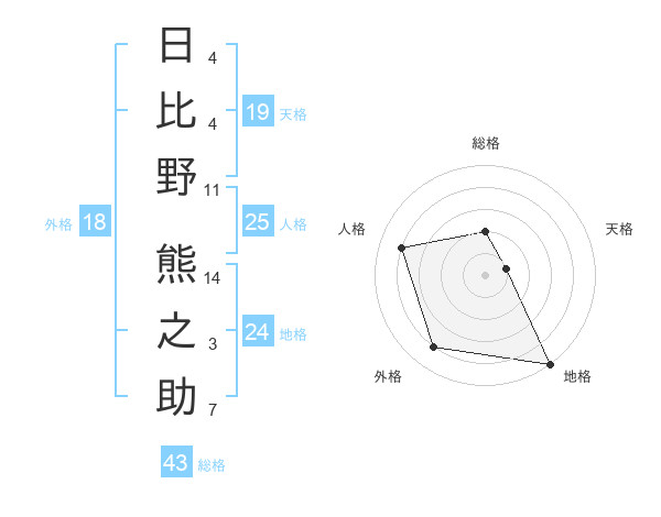 日比野 熊之助さんの総格は43画の2点!