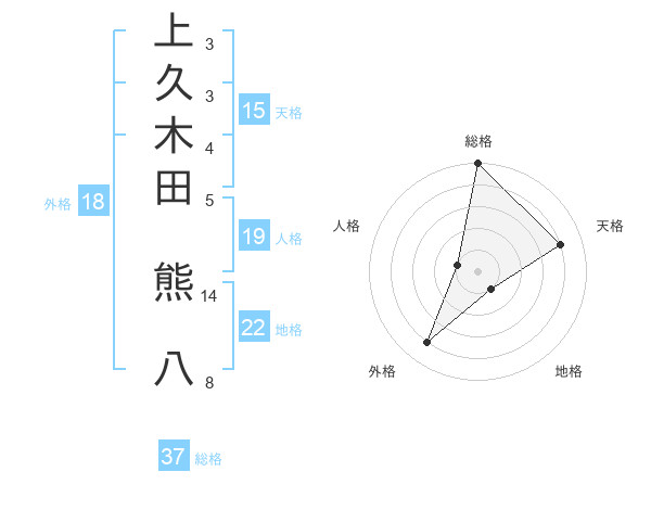 上久木田 熊八さんを姓名の画数から五運を鑑定