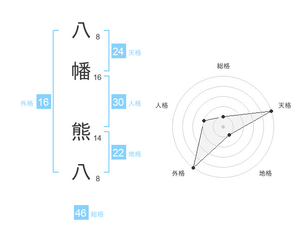 八幡 熊八さんを姓名の画数から五運を鑑定