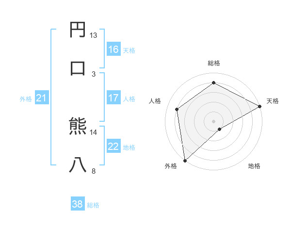 円口 熊八さんの外格は21画の5点!