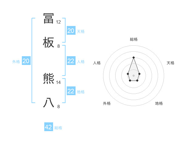 冨板 熊八さんを姓名の画数から五運を鑑定