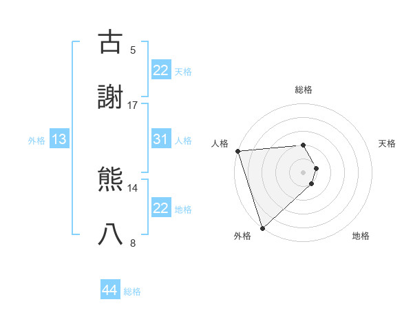 古謝 熊八さんの人格は31画の5点!