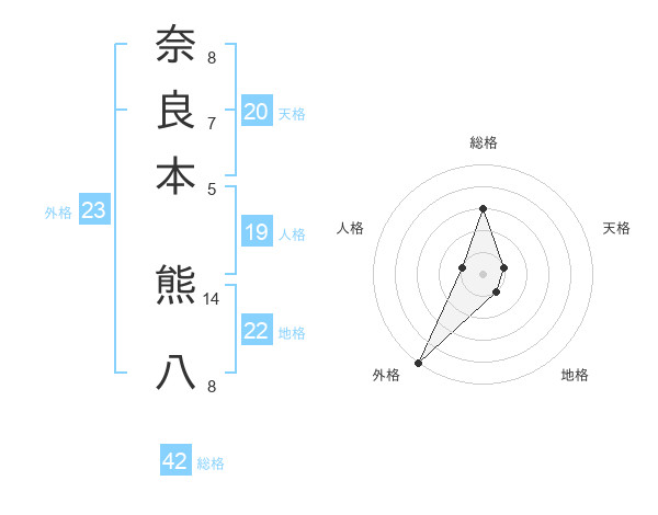 奈良本 熊八さんの外格は23画の5点!