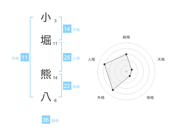 小堀 熊八さんを姓名の画数から五運を鑑定