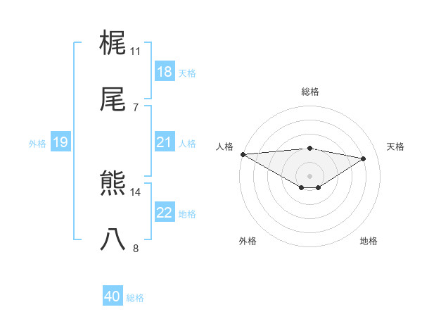 梶尾 熊八さんを姓名の画数から五運を鑑定
