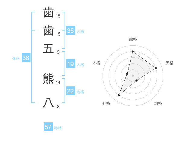 歯歯五 熊八さんの外格は38画の4点!