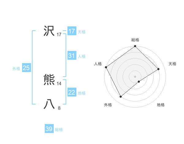 沢 熊八さんの人格は31画の5点!