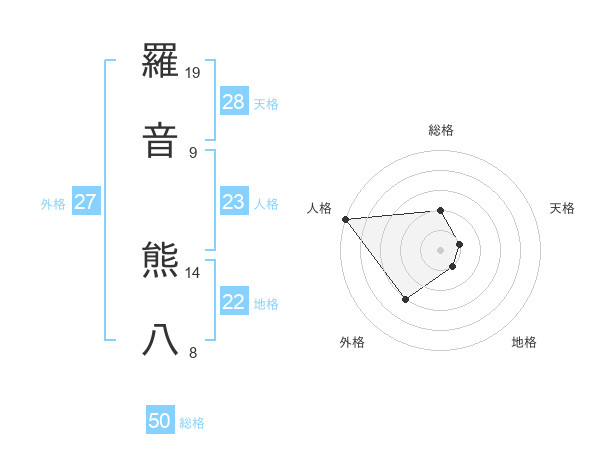 羅音 熊八さんを姓名の画数から五運を鑑定