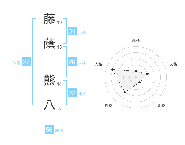 藤蔭 熊八さんを姓名の画数から五運を鑑定
