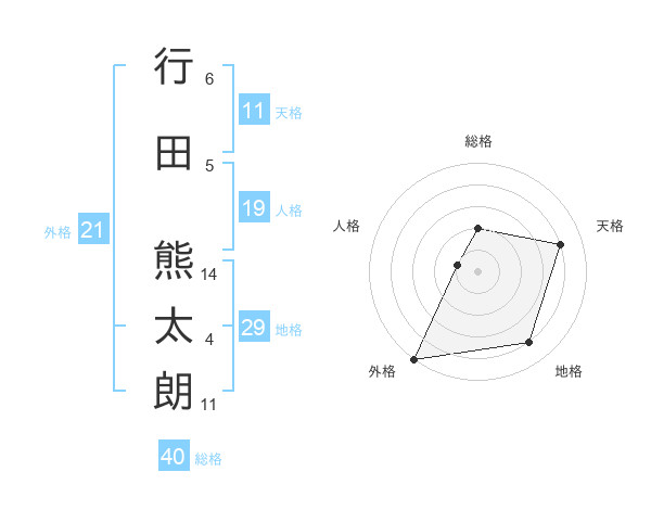 行田 熊太朗さんを姓名の画数から五運を鑑定