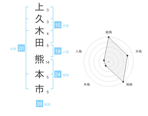 上久木田 熊本市さんを姓名の画数から五運を鑑定