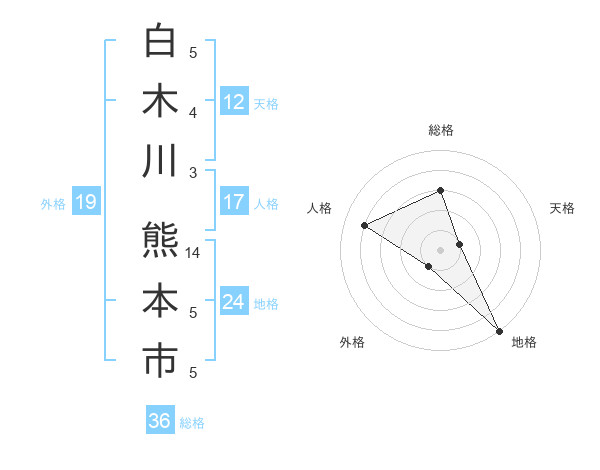 白木川 熊本市さんを姓名の画数から五運を鑑定
