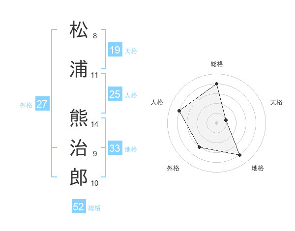 松浦 熊治郎さんの総格は52画の4点!