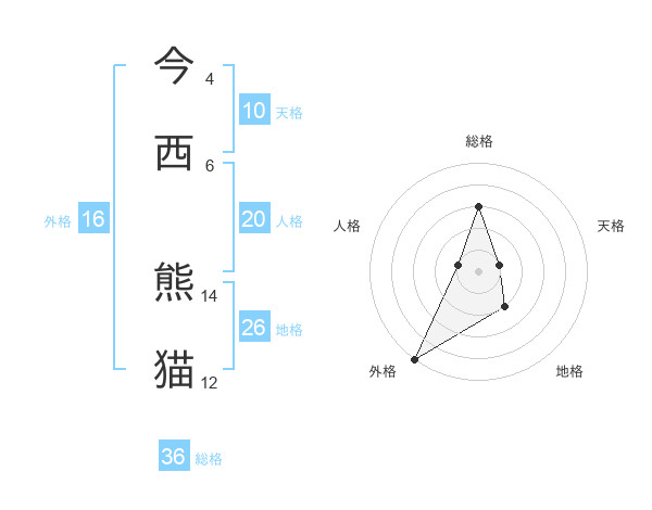 今西 熊猫さんを姓名の画数から五運を鑑定