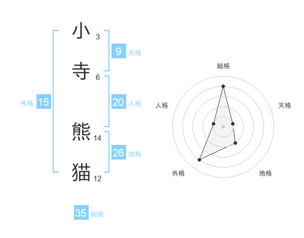 小寺 熊猫さんの総格は35画の4点!