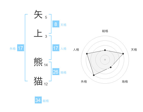 矢上 熊猫さんの総格は34画の2点!
