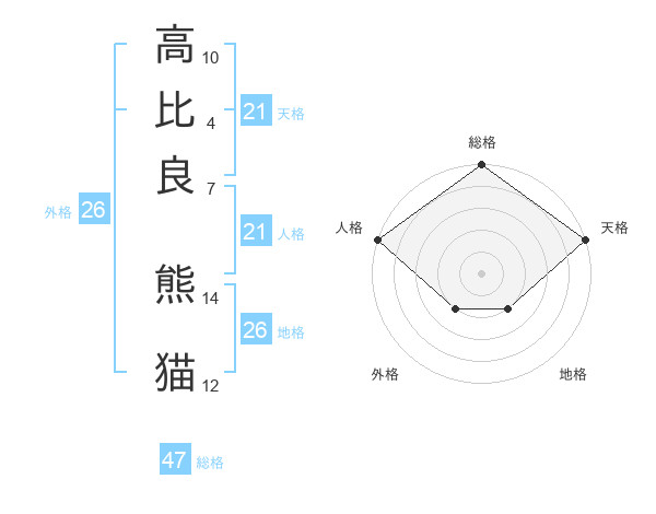 高比良 熊猫さんを姓名の画数から五運を鑑定