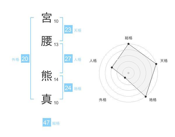 宮腰 熊真さんを姓名の画数から五運を鑑定