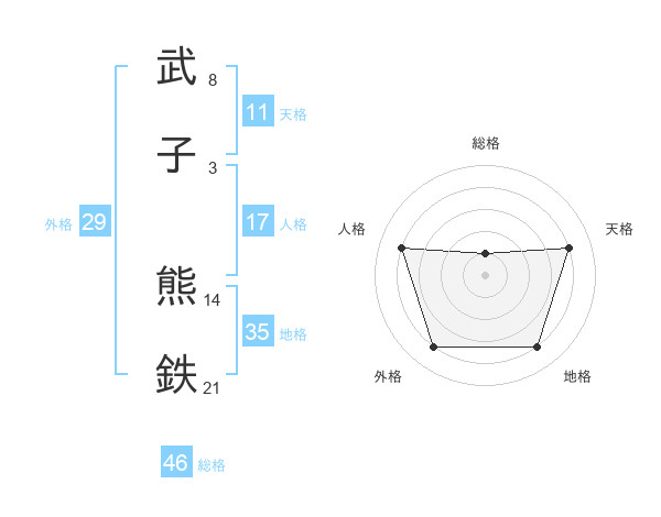 武子 熊鉄さんを姓名の画数から五運を鑑定
