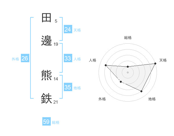 田邊 熊鉄さんを姓名の画数から五運を鑑定
