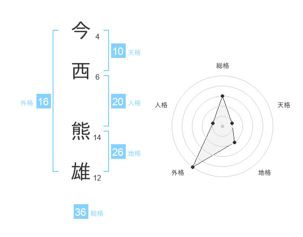 今西 熊雄さんを姓名の画数から五運を鑑定