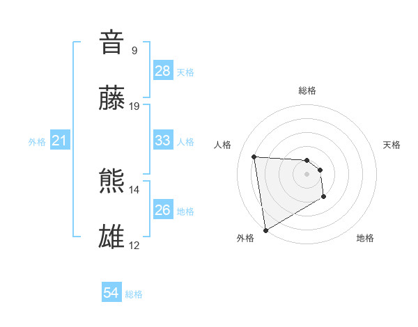 音藤 熊雄さんを姓名の画数から五運を鑑定