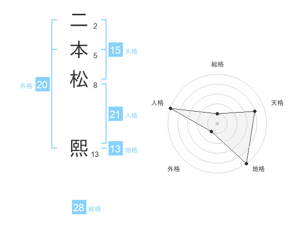 二本松 熙さんの外格は20画の1点!