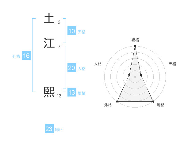 土江 熙さんの総格は23画の5点!