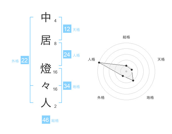 中居 燈々人さんを姓名の画数から五運を鑑定