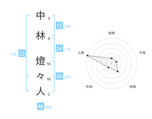 中林 燈々人さんの総格は46画の1点!