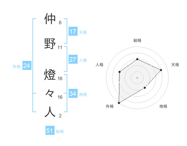 仲野 燈々人さんを姓名の画数から五運を鑑定