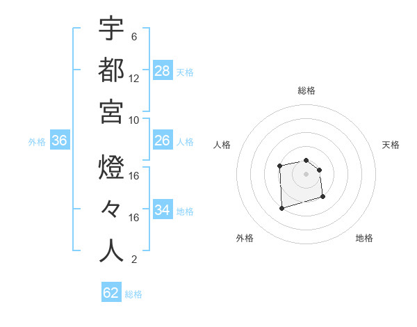 宇都宮 燈々人さんを姓名の画数から五運を鑑定