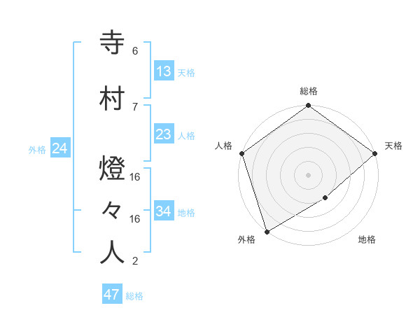 寺村 燈々人さんの総格は47画の5点!
