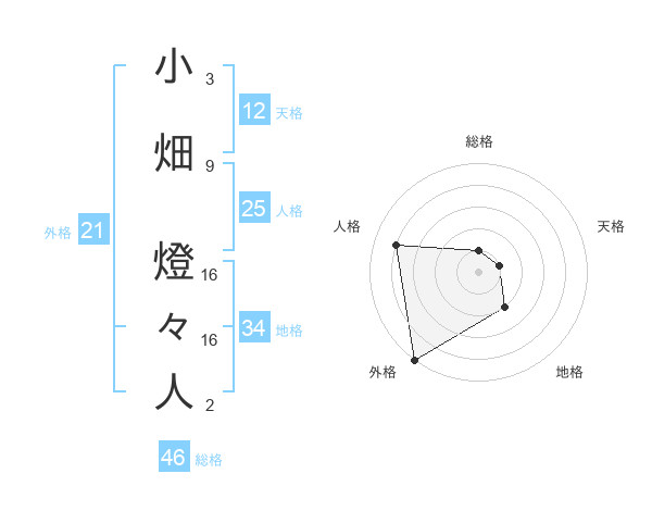 小畑 燈々人さんの外格は21画の5点!