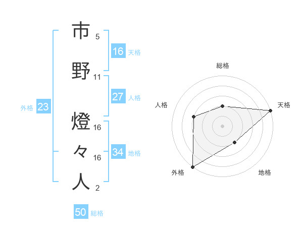 市野 燈々人さんの総格は50画の2点!