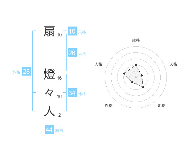 扇 燈々人さんを姓名の画数から五運を鑑定