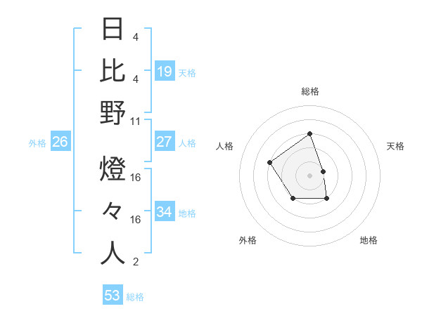 日比野 燈々人さんを姓名の画数から五運を鑑定
