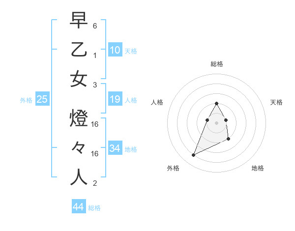 早乙女 燈々人さんの総格は44画の2点!