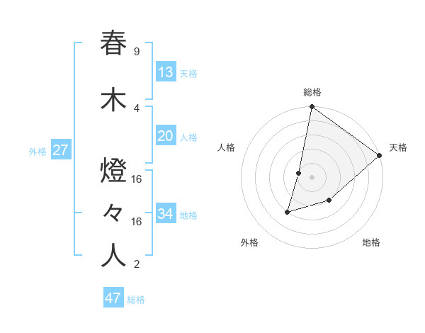 春木 燈々人さんを姓名の画数から五運を鑑定