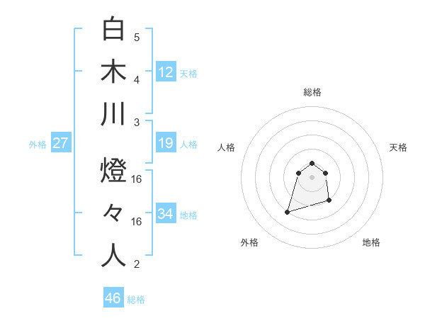 白木川 燈々人さんを姓名の画数から五運を鑑定
