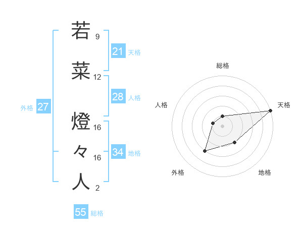 若菜 燈々人さんを姓名の画数から五運を鑑定